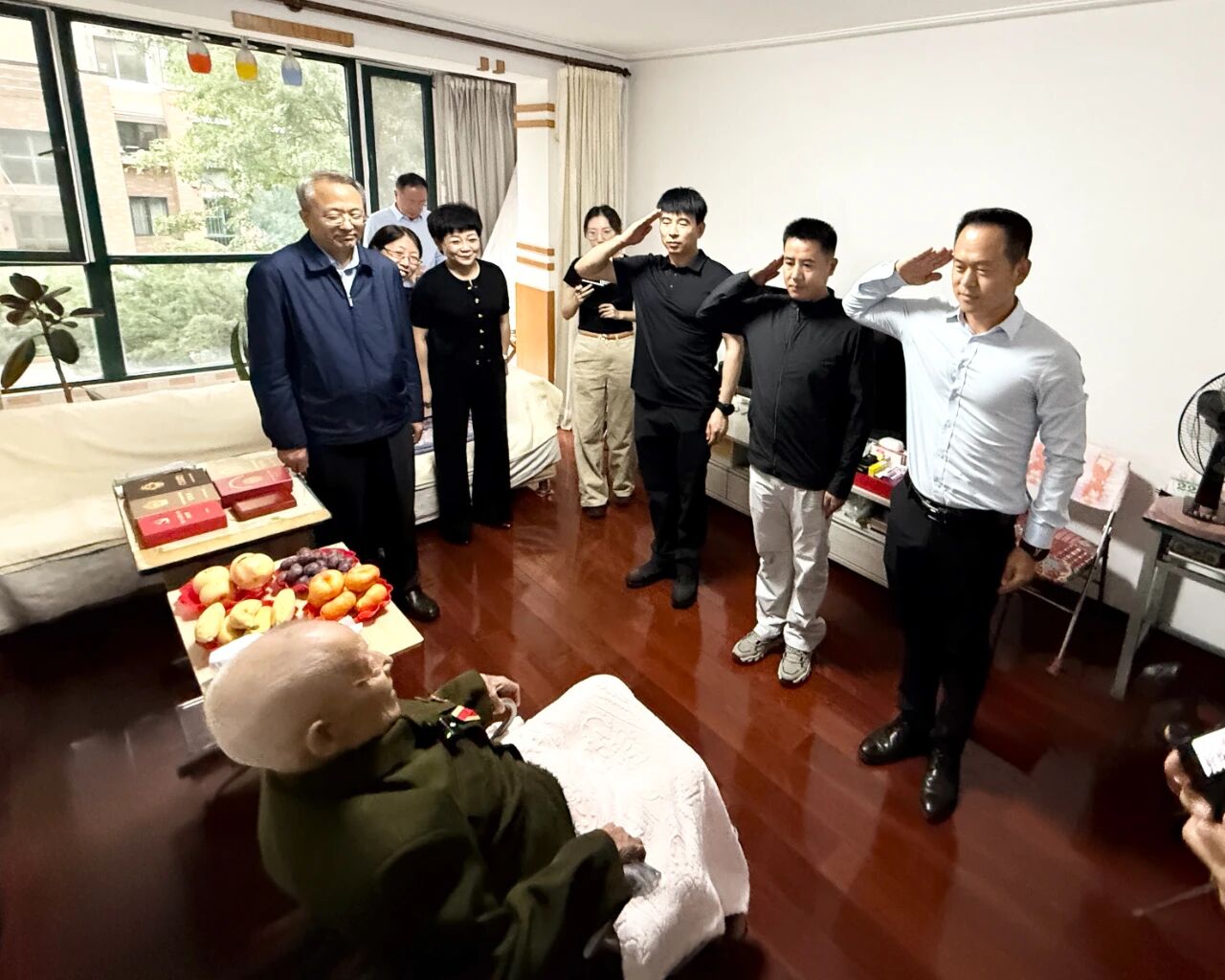 慰問過程中,韓宗森老同志與家人深情回顧了當(dāng)年的革命歷程,特別是抗戰(zhàn)時(shí)期的崢嶸歲月和英勇事跡?,F(xiàn)場氣氛熱烈,韓老還和大家一起高唱《中國人民志愿軍戰(zhàn)歌》。雖已年過九旬,他依然思維敏捷、聲音洪亮、精神矍鑠。在場的工作人員和退役軍人無不為之動容,自發(fā)地向韓老行莊嚴(yán)的軍禮,表達(dá)由衷的敬意。